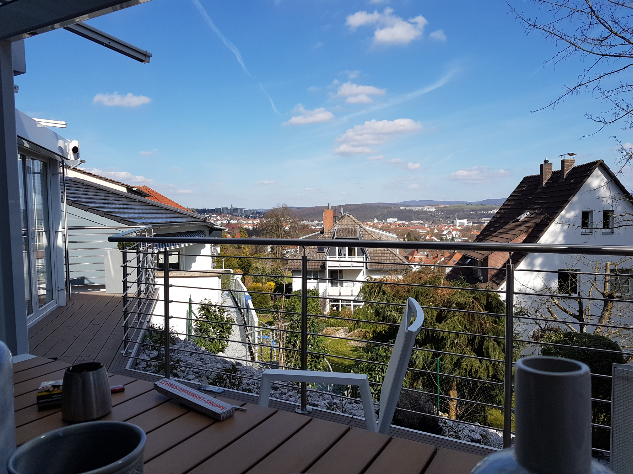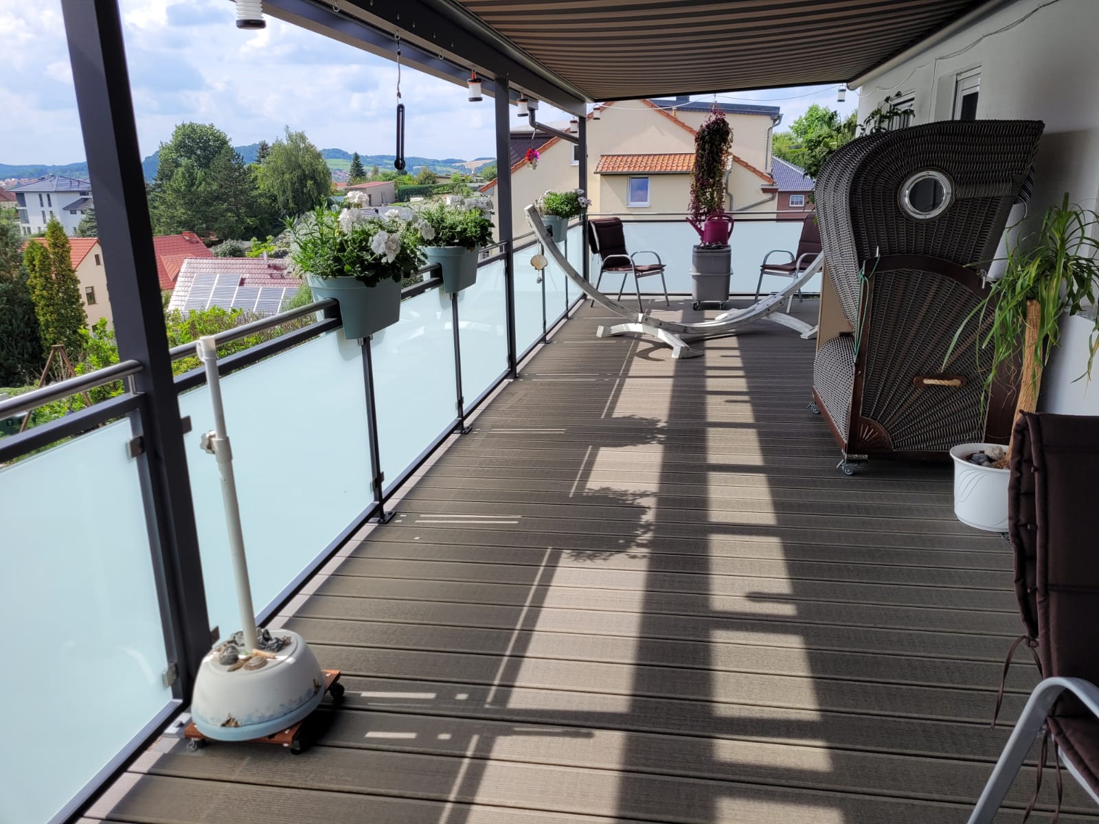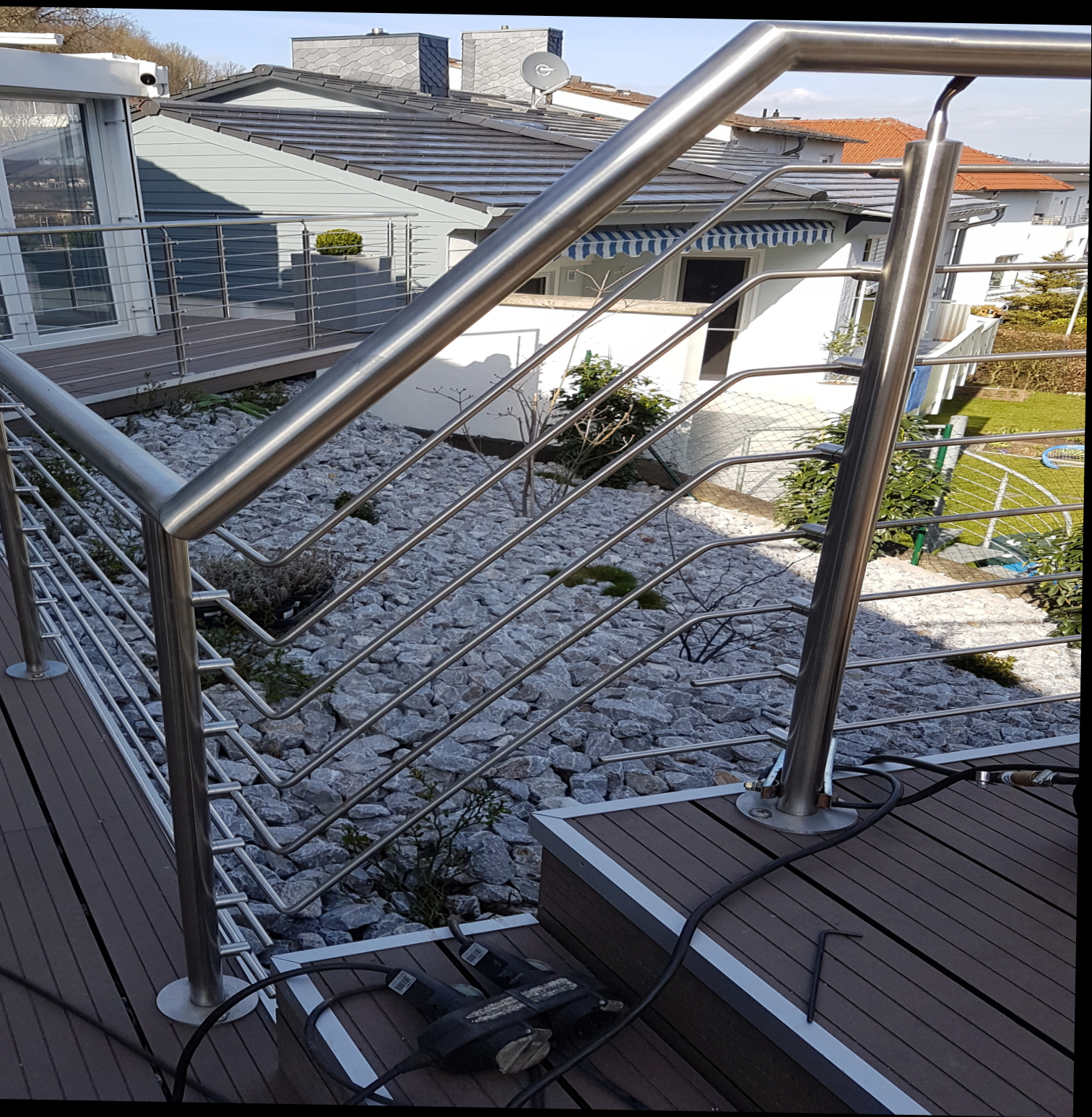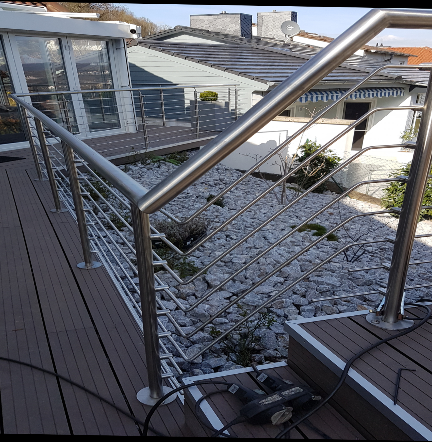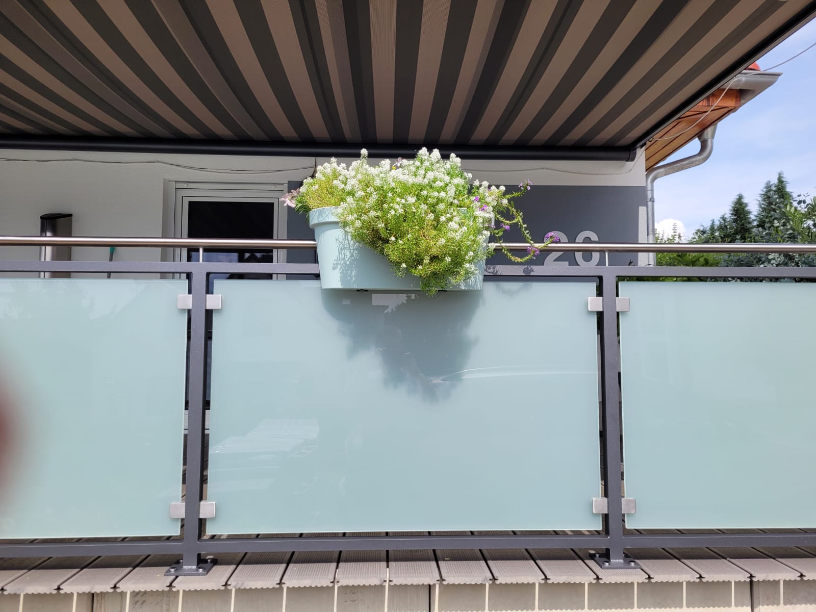 - Balkongeländer aus Metall, wenn gewünscht in Kombination mit Glas und/oder Holz